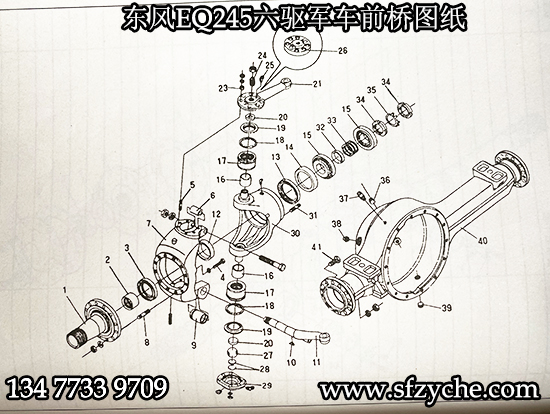 東風(fēng)EQ245六驅(qū)軍車前橋配件圖紙,今天給大家分享一下六驅(qū)245軍車前橋圖紙,方便大家修車,東風(fēng)EQ245退役后大量運(yùn)用于內(nèi)蒙古,青海,新疆等戈壁灘,沙漠使用,為了大家好修車,特此分享。先給大家普及一下EQ245和EQ240的區(qū)別,EQ245采用12R20越野輪胎,輪胎螺絲為8孔,常稱大炮車,車廂尺寸4.2米。EQ240采用11R18越野輪胎,輪胎螺絲6孔,車廂3.5米,常稱小炮車,有不懂的朋友隨時(shí)聯(lián)系。