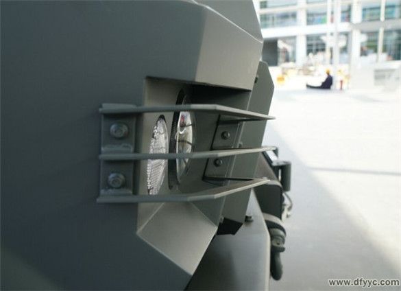 東風(fēng)四驅(qū)防雷反恐戰(zhàn)車的前組合燈分為帶透鏡的近光燈、雙角度照射遠(yuǎn)光燈,轉(zhuǎn)向燈位于翼子板兩側(cè)。近光燈與遠(yuǎn)光燈被3幅面橫置格柵保護(hù)。