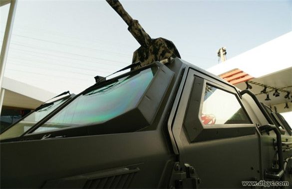 東風(fēng)四驅(qū)防雷反恐戰(zhàn)車全車具備防護(hù)7.62毫米口徑穿甲彈攻擊,正向具備防護(hù)12.7毫米口徑機(jī)槍彈攻擊(100米),而全車所有玻璃可以抵御7.62毫米口徑穿甲彈連續(xù)射擊3次擊穿。為了提升防護(hù)級別、密封效能和降低觀察死角,全車防彈玻璃突出車身焊接外側(cè)安裝。