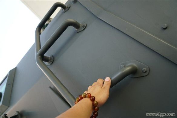 上圖是東風(fēng)四驅(qū)防雷反恐戰(zhàn)車右前車門外拉手特寫。
