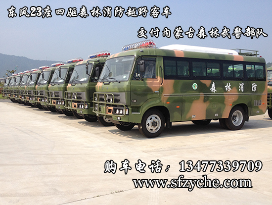 東風(fēng)23座四驅(qū)森林消防專用運(yùn)兵車型號(hào)為EQ6680ZTV,采用軍工東風(fēng)EQ6650KZ5T 三類底盤,發(fā)動(dòng)機(jī)型號(hào):ISD160 50康明斯160馬力國(guó)五排放,變速箱為手動(dòng)六檔變速箱,整車外形尺寸長(zhǎng)寬高(6800X2320X2800,3010)mm 驅(qū)動(dòng)形式:4×4,離合助力,方向助力,斷氣剎,鼓式自動(dòng),車橋?yàn)闁|風(fēng)德納,輪胎為7.50R20鋼絲胎,外行李架,工具箱3個(gè),前置防裝杠,粘接式推拉玻璃,鋁花紋地板,中檔座椅,,手動(dòng)式外擺門,153駕駛室正副司機(jī)門,獨(dú)立柴油鍋爐暖風(fēng)機(jī)帶四個(gè)出風(fēng)口,窗簾,滅火器兩個(gè),備胎一個(gè)。選裝頂置派恩大功率空調(diào)機(jī)組。